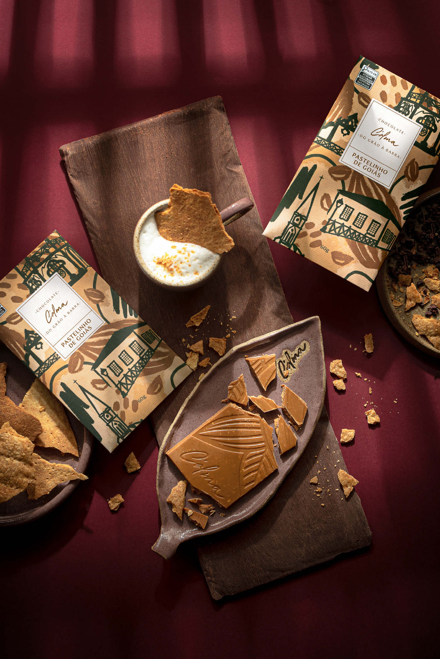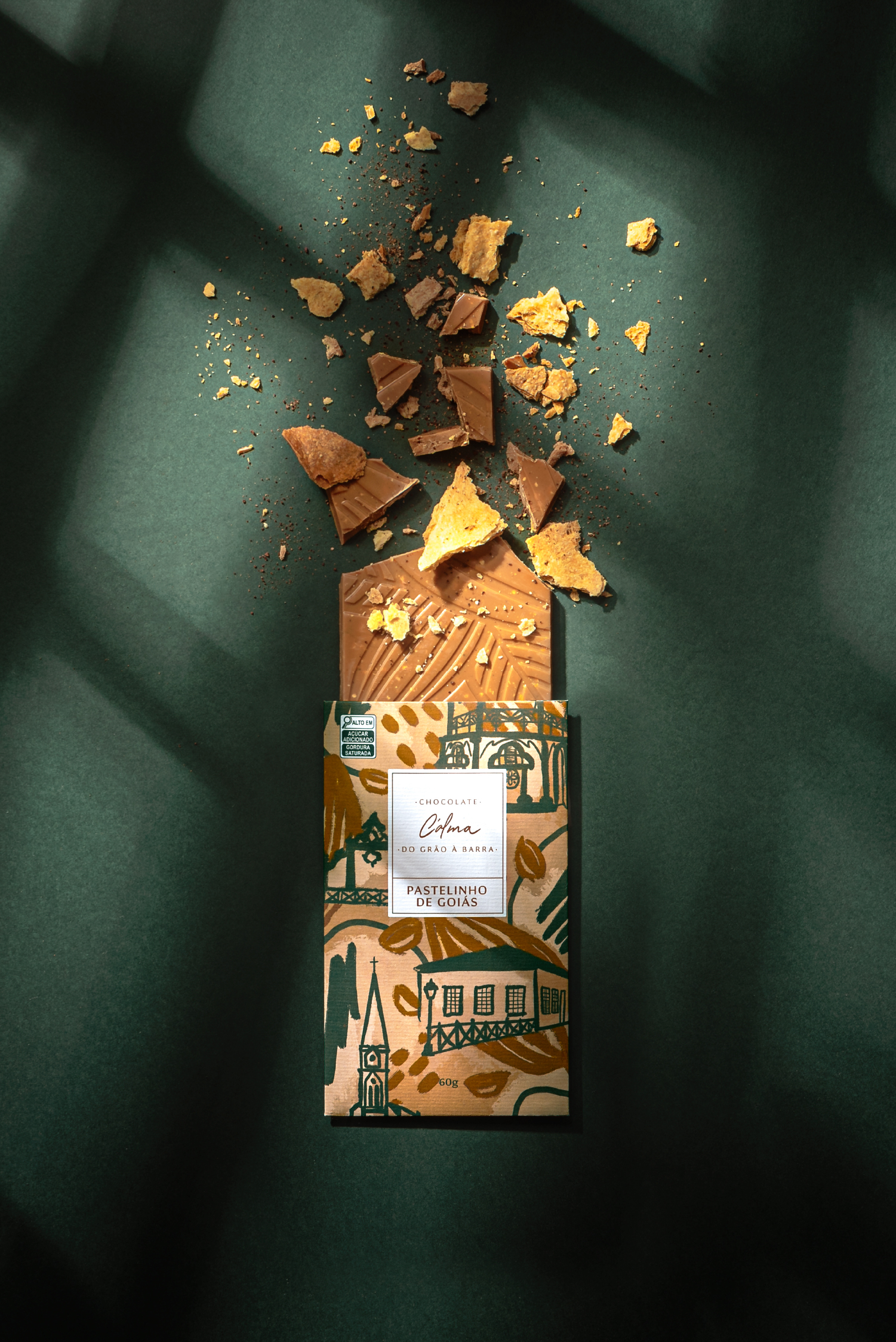 Pastelinho de Goiás. Explore the tradition and authenticity of Goiás in this bar. A dulce de leche chocolate with hints of cinnamon intertwined with pieces of traditional Pastelinho de Goiás pastry, providing a unique experience that honors Goiás culture and preserves its rich gastronomic heritage. Watch the video to understand the conception of this bar flavor.